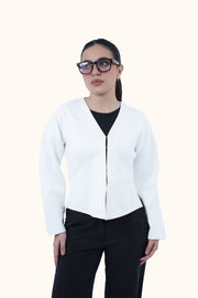 A soft, textured jacket crafted from premium suede, designed to feel smooth and lightweight—an ideal layer for early autumn days. The front is finished with hidden mini hooks instead of buttons to keep the look clean, minimal, and uninterrupted.